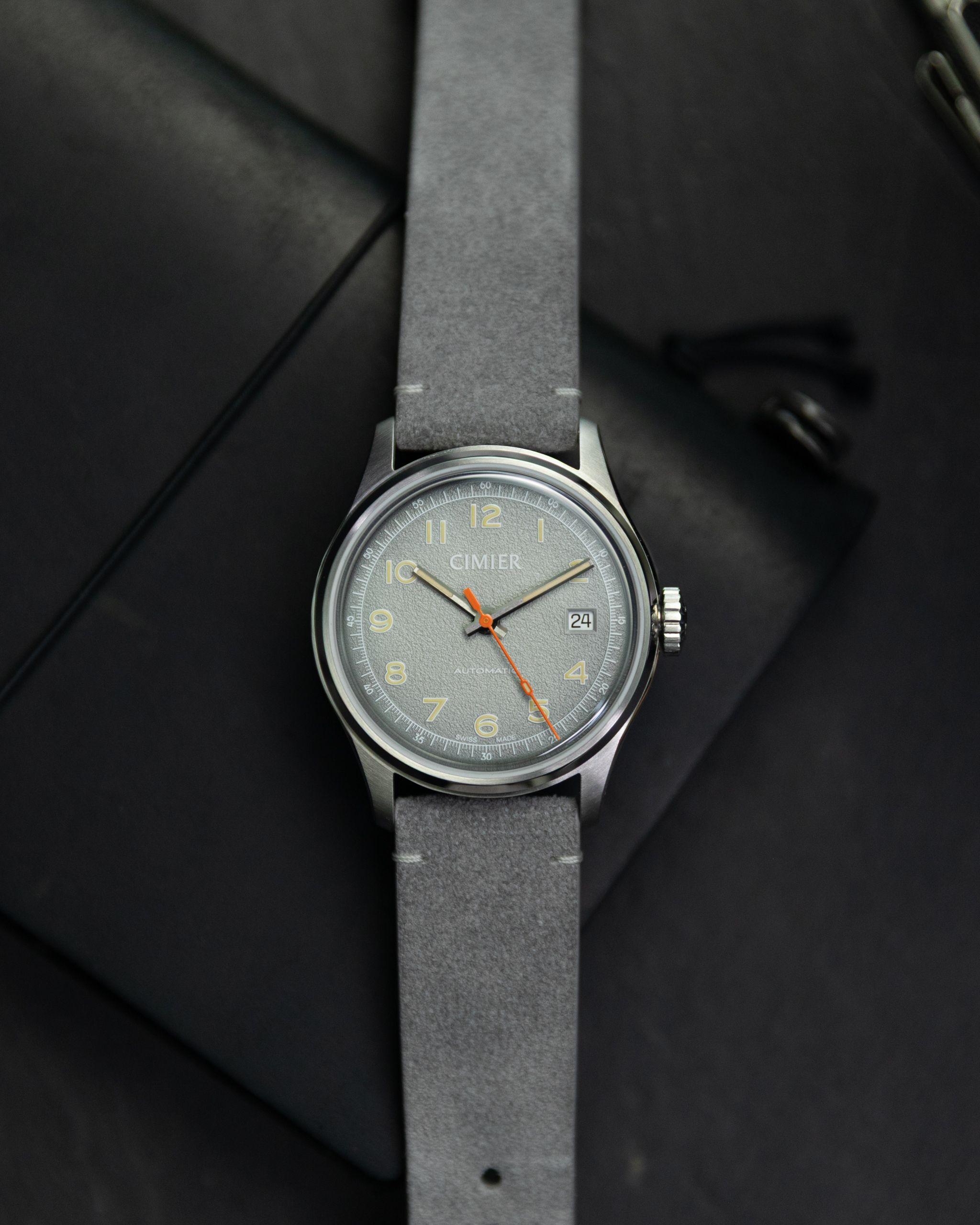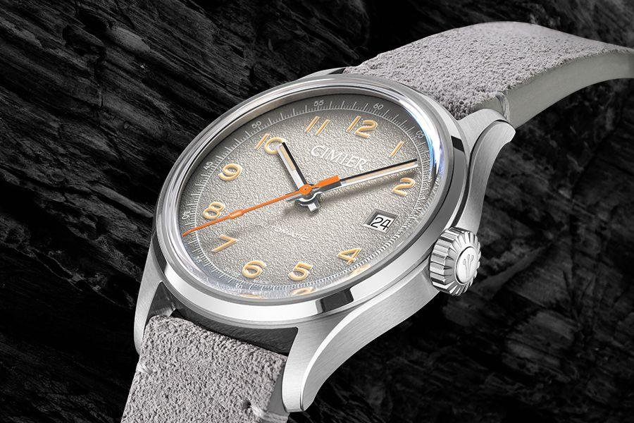 A grained dial lends an organic sense of depth and character. This refined, tactile finish elevates the watch beyond a simple tool, blending vintage field watch aesthetics with contemporary style.